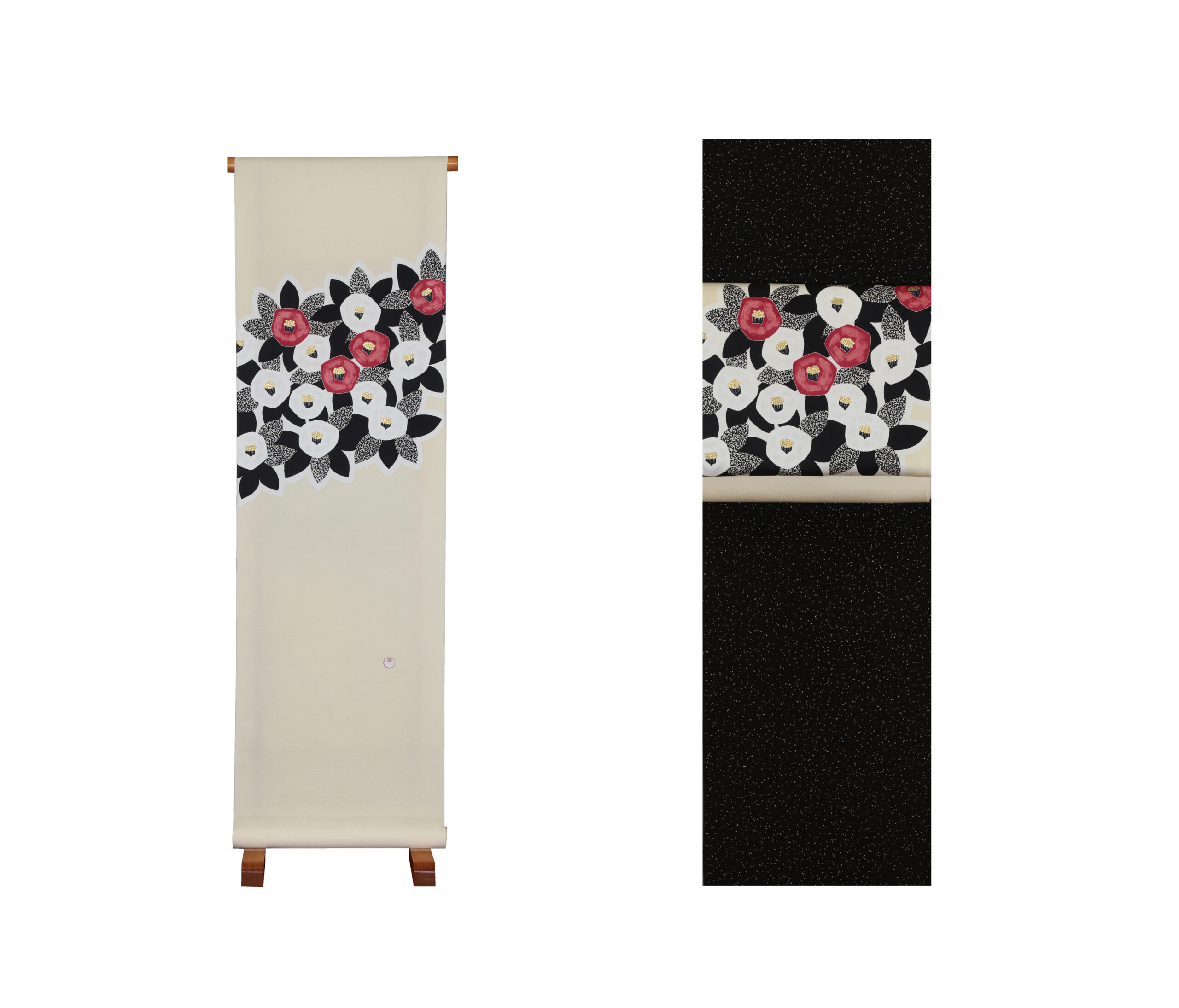 20266 Feb 友禅帯「春のしらべ」 庭に咲く椿を工芸的にデザインしてみました。艶のある変わり織生地を使い仕上げに金彩でアクセントを付けてあります。 Share Copyright © YOTSUI KIMONO DESIGN All Rights Reserved.